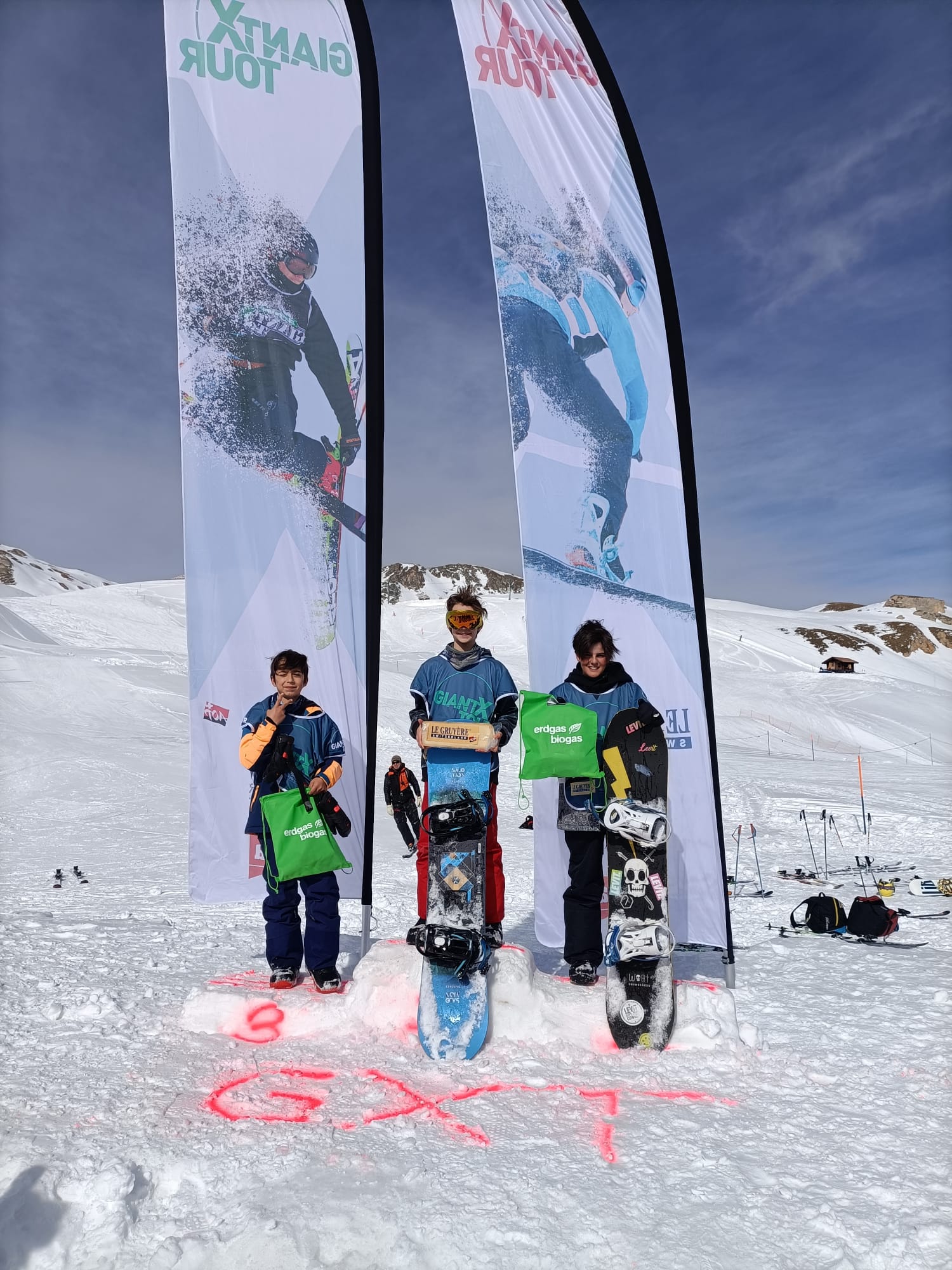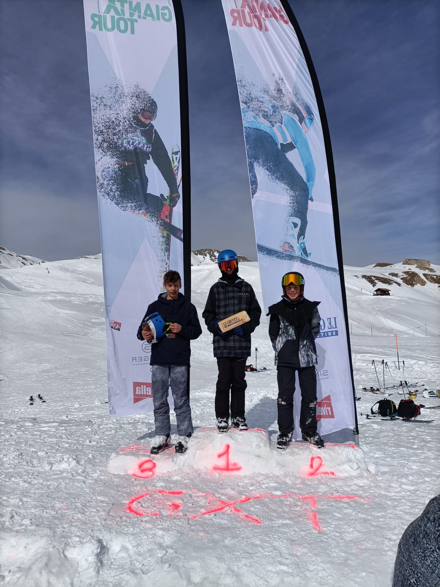 GiantXtour à Grimentz 14 mars 2021FT Supers résultats et du fun pour les jeunes engagés à Grimentz pour le GiantXTour! merci aux coachs Hugo & Greg! Ski U15: 1er Timo, 2e Jamie, 3e RaphaëlSki U13 5e Maël, 6e Mathys, 7e Théo Snowboard: 1er Florent, 2e Léo, 3e Arnaud